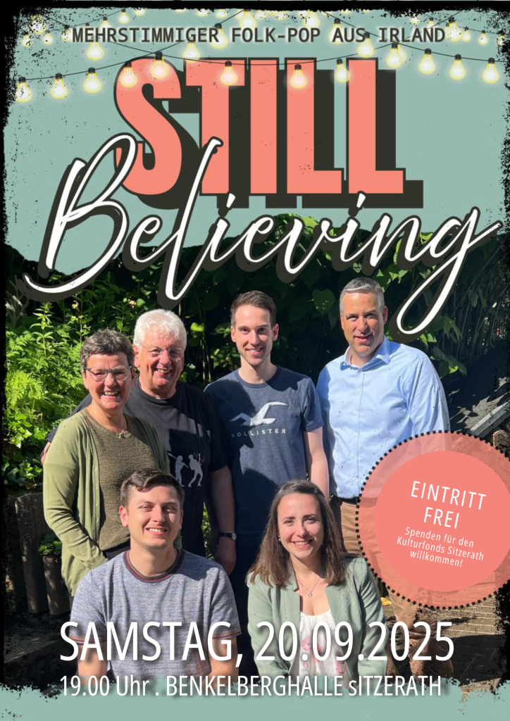 Am Samstag, dem 20. September 2025, lädt die Band Still Believing zu einem besonderen musikalischen Abend in die Benkelberghalle Sitzerath ein.
